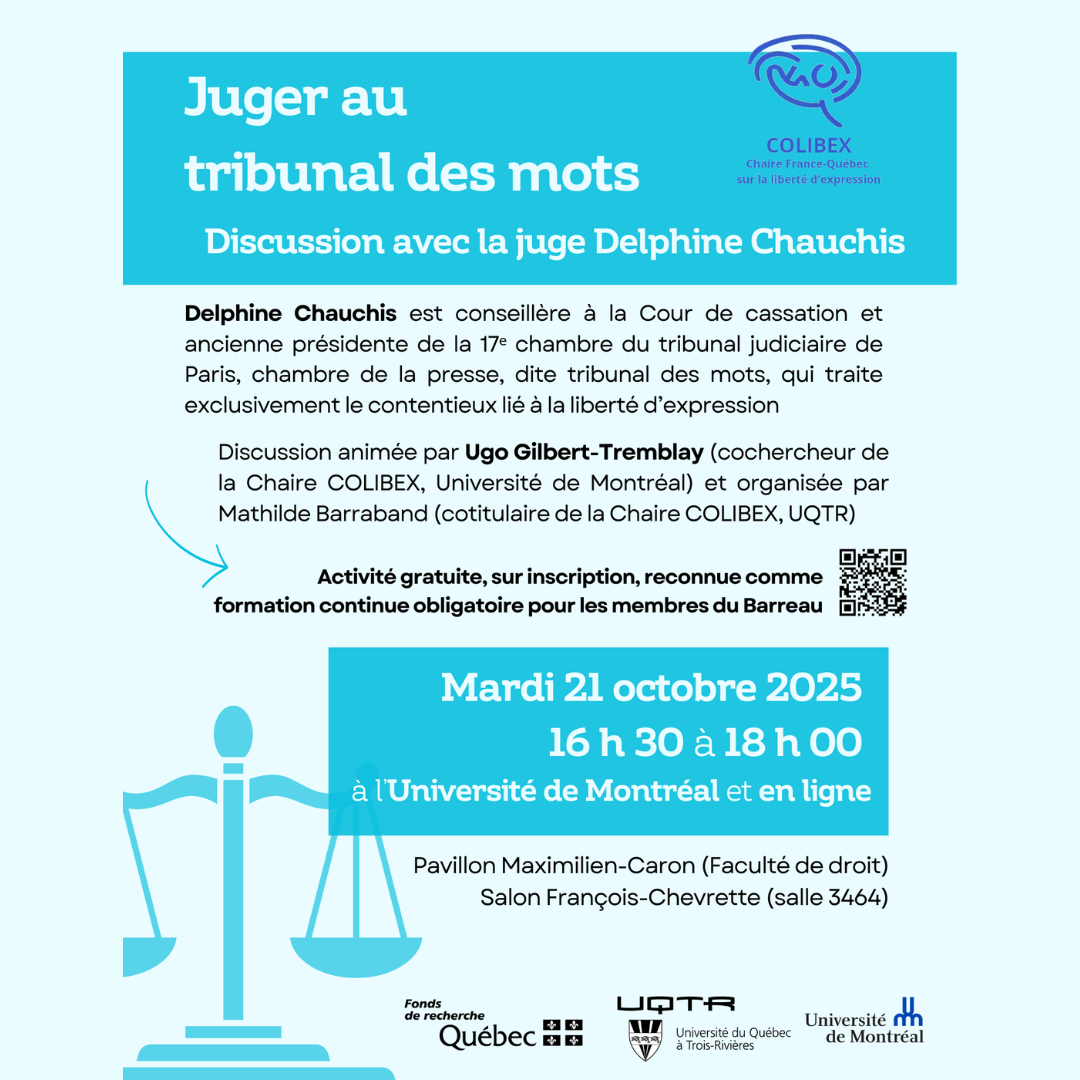 Appel à communications pour le 3e colloque de la recherche émergente sur la liberté d’expression de la Chaire COLIBEX