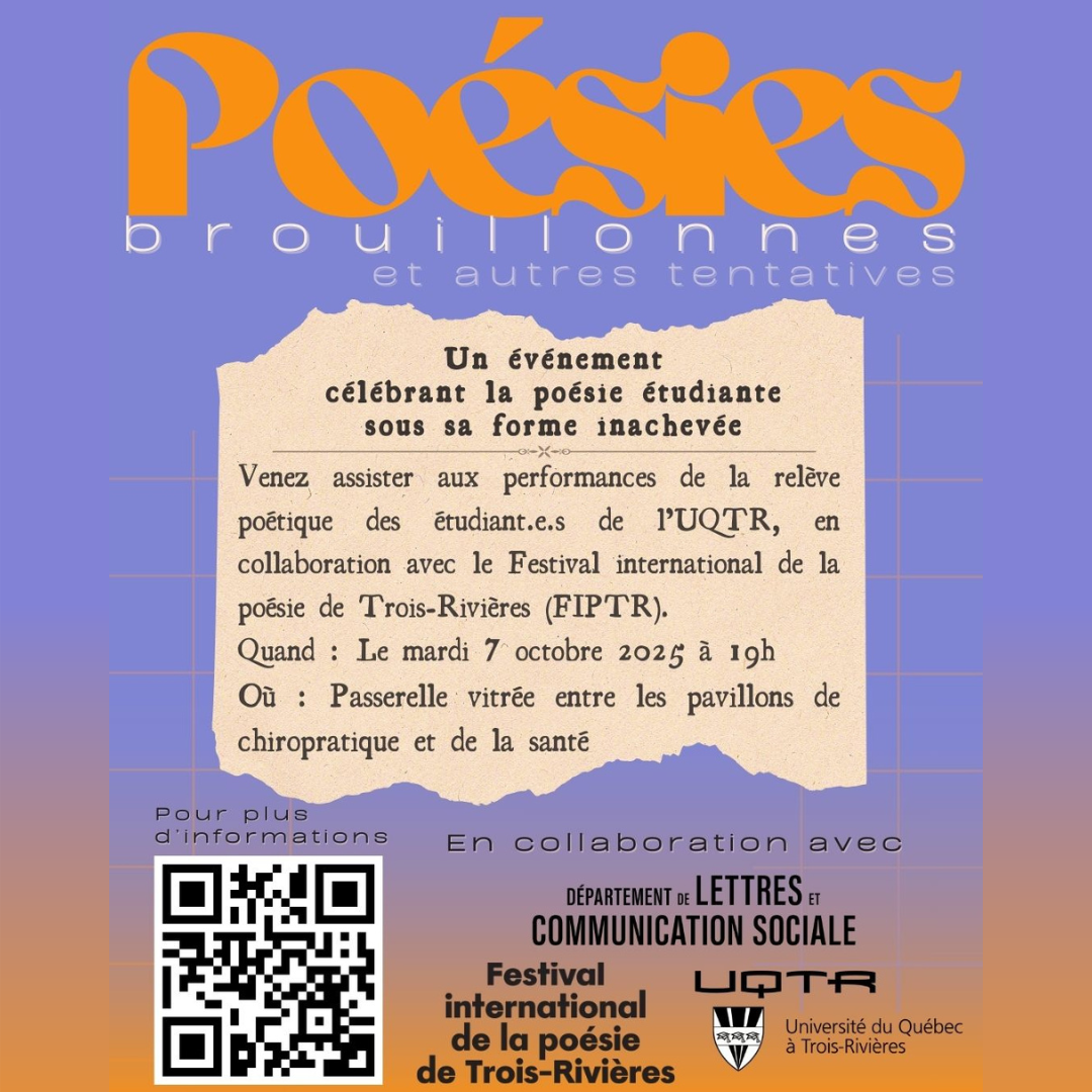 Performances de la relève poétique des étudiant.e.s de l’UQTR « Poésies brouillonnes… et autres tentatives »