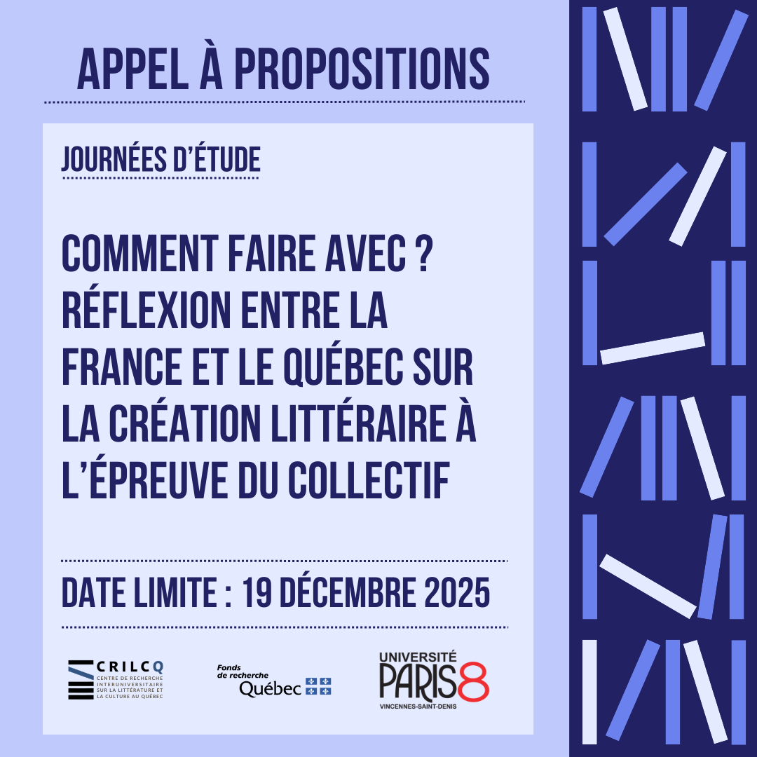 Appel à propositions - journées d'étude internationales « Comment faire avec ? Réflexion entre la France et le Québec sur la création littéraire à l’épreuve du collectif »