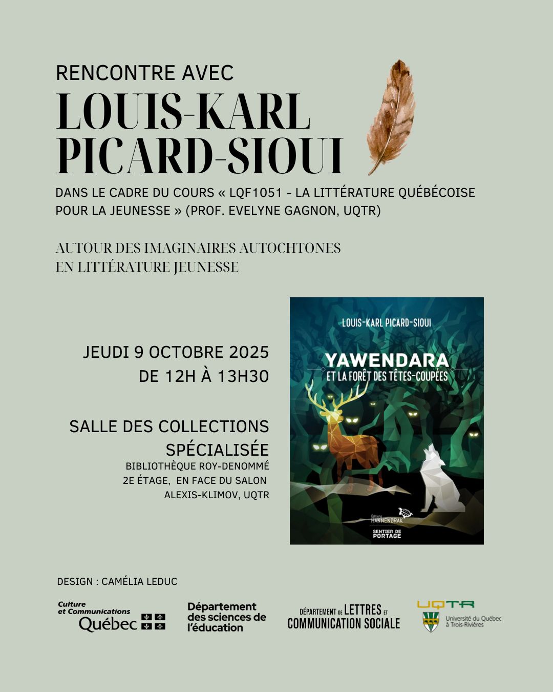L’UQTR recevra la visite de l’écrivain, commissaire, historien et anthropologue wendat, Louis-Karl Picard Sioui, pour l’activité « Imaginaires autochtones en littérature jeunesse ». La rencontre organisée par Evelyne Gagnon (cochercheuse CRILQ, UQTR) aura lieu le 9 octobre 2025, de 12h à 13h30, à l’UQTR, à la salle des Collections spécialisées de la Bibliothèque Roy-Dénommé.